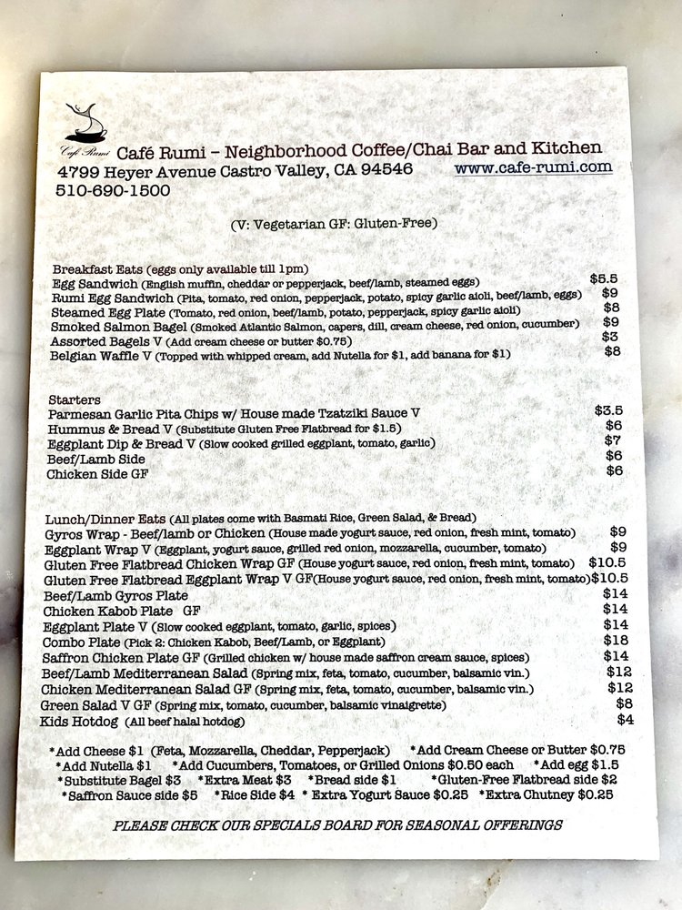 Welcome to Cafe Rumi, a charming spot where flavors and community converge in Castro Valley. This women-owned cafe is not just another eatery; it offers a delightful array of beverages and dishes, all crafted with care. From their signature pink chai latte to delectable choices like the beef & lamb gyro, each item invites you to savor unique, bold flavors.